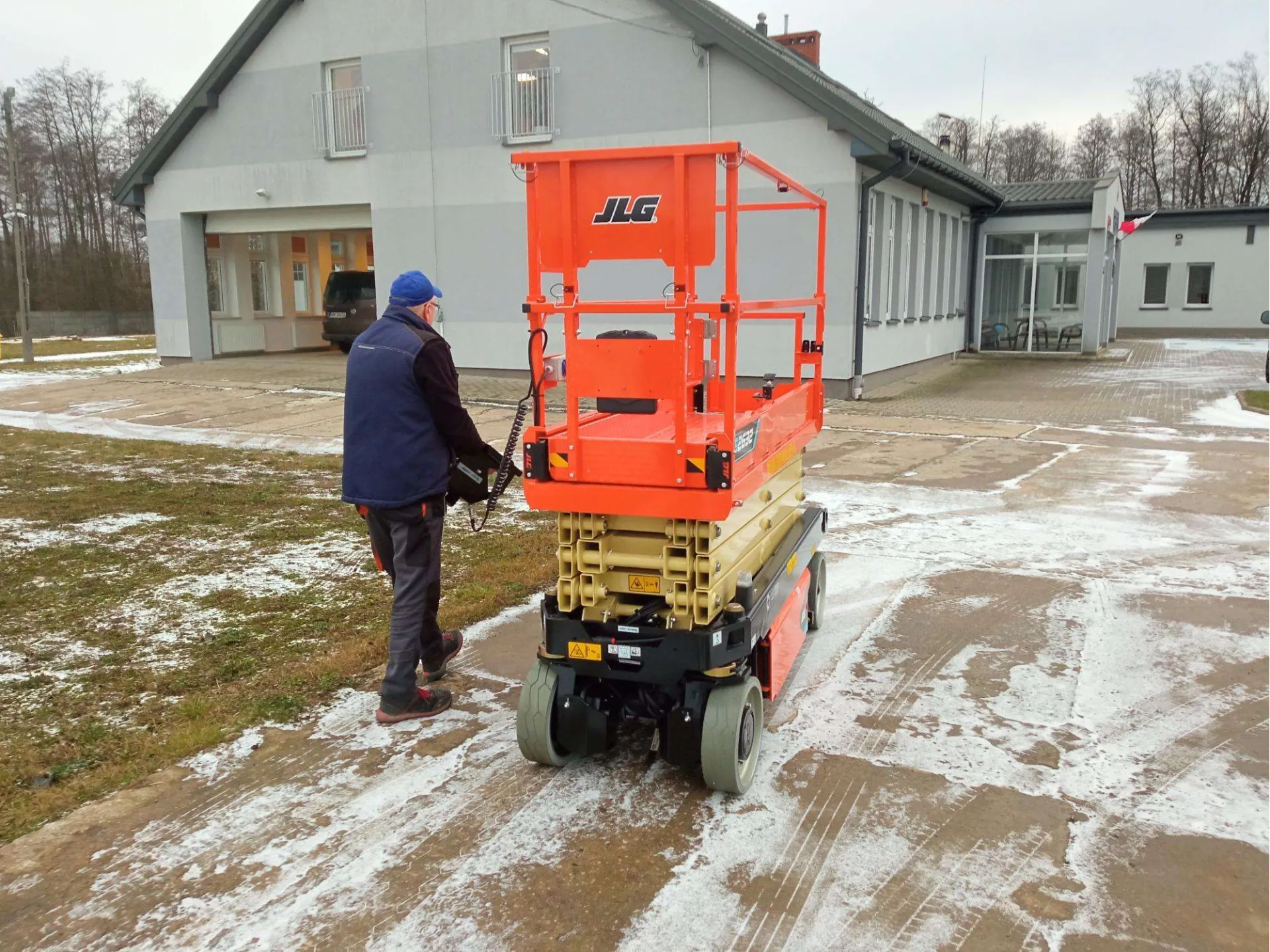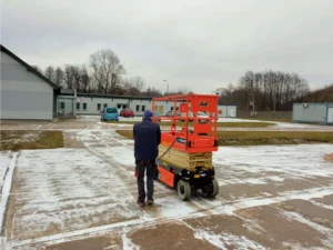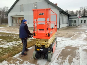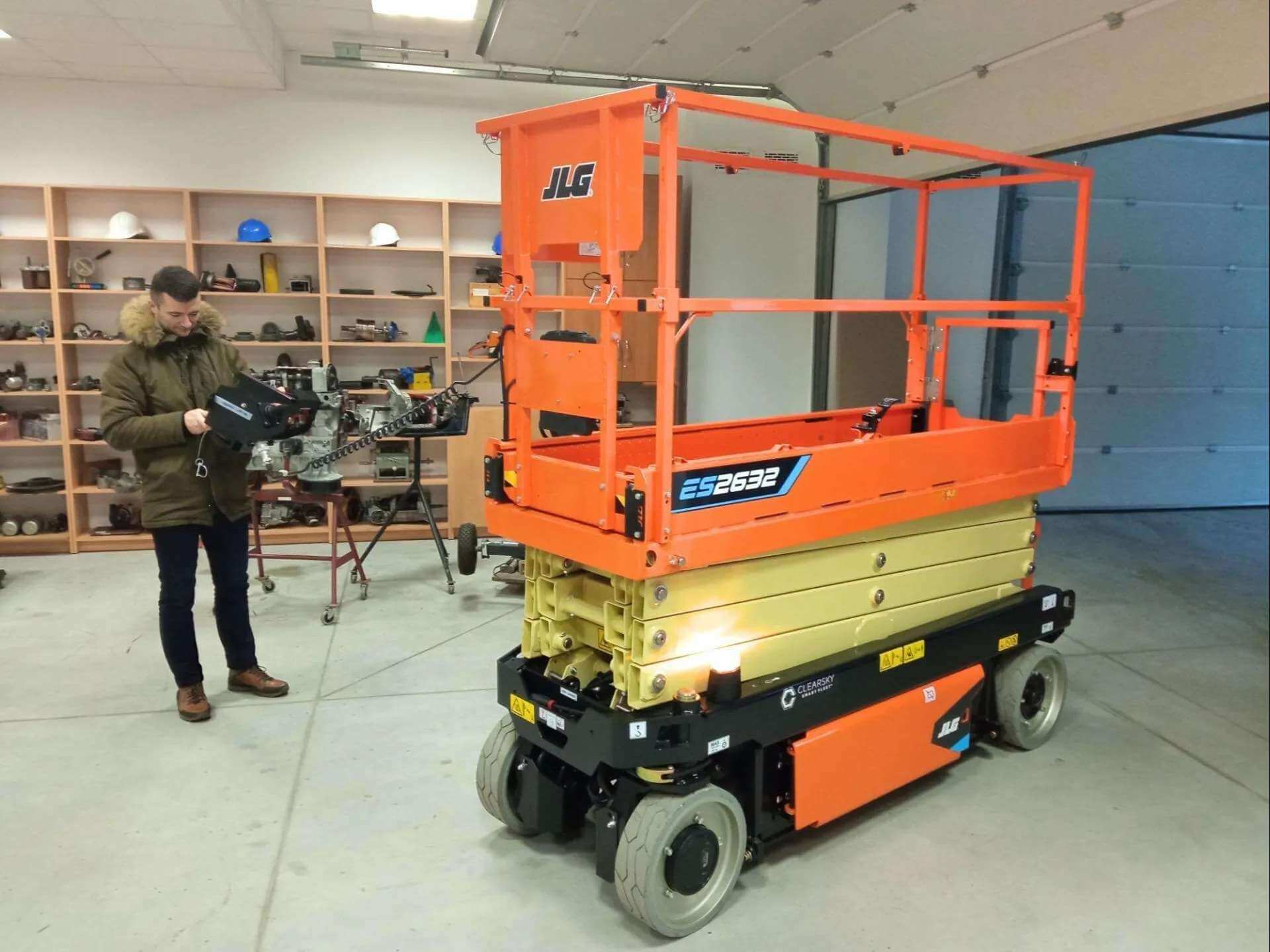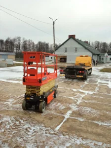 Po analizie złożonych ofert, wybrano model JLG ES2632 – elektryczny podest nożycowy o wysokości roboczej 9,8 metra i udźwigu 230 kg.