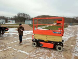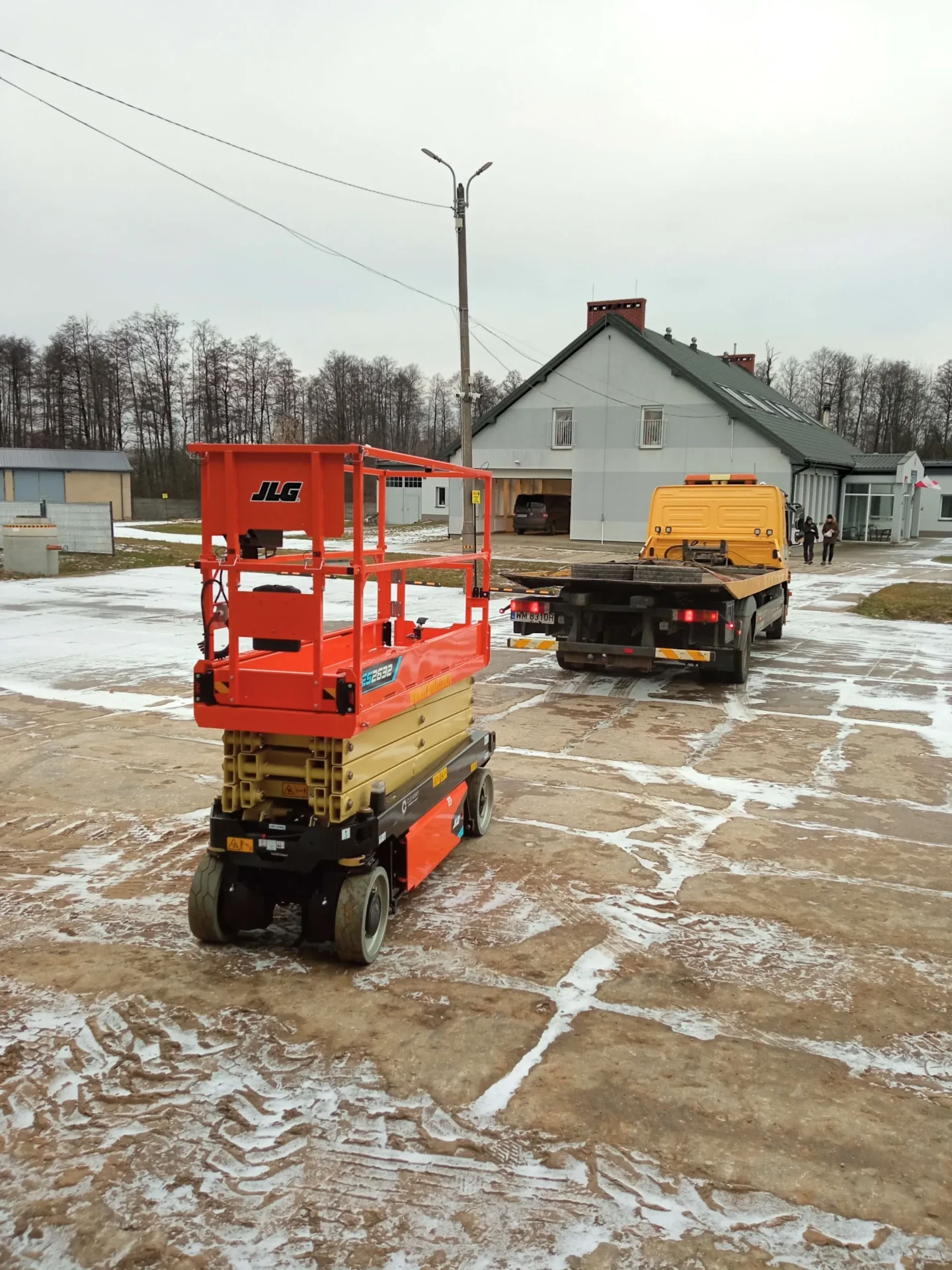 Podest JLG ES2632 uzupełnia zestaw maszyn budowlanych obok wcześniej zakupionego walca tandemowego oraz wyremontowanej koparki CAT 307B.